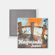 Nagasaki Japão floresce poster. Belo poster de viagens cor-de-rosa de desenho japonês.