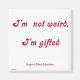 "Eu não sou estranho, sou dotado" em tinta de marrom em um ímã. Escolha seu tamanho e forma favoritos.