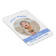 Trendy, personalizado clássico, novo filhinho flexível, magneta fotográfica para usar em vez de um anúncio de nascimento no papel para a vovó. Inclui um quadro branco com uma abertura redonda para uma fotografia horizontal personalizada, as estatísticas de nascimento do bebê e uma banda azul curvada em que aparecem o primeiro nome e o meio (ou o primeiro e o sobrenome) da pequena em uma letra/tipografia elegante. Esta design inclui as palavras "Eu te amo, vovó!", que você pode personalizar ainda mais.