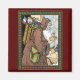 Ilustração vítrea estilo vitoriano Feriado de Natal Feliz Imagem de Papai Noel apresentando o Santo Nicholas vestido em um casaco marrom segurando uma laranja em um calçado de entupimento de madeira. Ele é carregando cheio de brinquedos e uma bandeira francesa nas costas. Mais calçados com brinquedos, doces e laranjas estão no peneiro coberto pela neve. Saudações da temporada e feriados felizes!