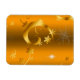 Um elegante imã de Natal ouro com um padrão de estrelas douradas, flocos de neve e espirais com uma estrela branca e cintilante sobre um fundo de ouro lux para adicionar um toque de na moda a suas decorações de Natal este ano.