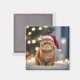 Um gato exótico e bonito de gengibre de shorthair vestindo um chapéu de Papai Noel.