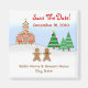 Uma imã salve a data de Natal / Inverno com uma divertida cena de inverno cheia de neve coberta de árvores de Natal, igreja Gingerbird e noiva de gengibre e noiva. Personalize o texto com detalhes do seu evento.