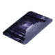 Uma árvore de Natal cintilante numa floresta de pinheiros coberta de neve na noite de inverno.