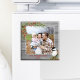 Adicione a sua própria foto e nome da família para personalizar este ímã de Natal russo. Um grão giro é tocado num galho de pinheiro decorado com bagas, e o fundo é madeira de cinza rústica. *Se você quiser usar design ou quiser que o design em mais produtos, visite a coleção ou entre em contato comigo através do Zazzle Chat.