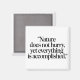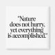 Ce design élégant présente la sagesse intemporelle de la citation "Nature does not hurry, yet everything is accomplished" (La nature ne se précipite pas, pourtant tout s'accomplit). Avec sa typographie raffinée en noir et blanc, ce message profond rappelle la puissance de la patience et l'harmonie des processus naturels.