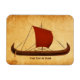 Uma nave longa Viking com uma vela vermelha vista no perfil do lado direito e sobreposta a uma imagem de fundo de papel antiga. Personalize adicionando seu próprio texto.
