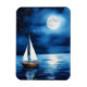 Magnet em ilustração de um veleiro a derivar-se pacificamente num mar calmo e iluminado, rodeado por um céu noturno estrelado. A lua de cheio lança uma reflexão suave sobre a água, criando uma cena serena e tranquila.
