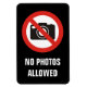 Ícone da câmera com círculo proibido vermelho e texto personalizado lendo "Sem fotos permitidas"
