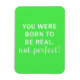 Neon Green Cote em branco; "Você foi nascer de ser real, não perfeita!" Citação inspiradora para todos.