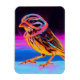 Uma ilustração néon marcante de um pardal adornada com anéis brilhantes e sotaques vibrantes, colocada contra um pano de fundo ousado de púrpuras, blues e pinks inspirados em ondas sintéticas. Este trabalho de arte retro-futurista de aves é perfeito para fãs de estética de ondas de vapor, arte digital brilhante e retratos de animais surreais.