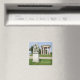 Uma fotografia da estátua Castor e Polux e do templo Hebe em Neustrelitz, Mecklenburg-Vorpommern, Alemanha, é mostrada neste ímã de souvenir. O texto é personalizável ou removível. Os ímãs fazem um presente ideal, ou um presente pessoal para ficar no seu frigorífico ou no armário. Este ímã quadrado é de 2" x 2" (5 cm x 5 cm) ou você pode escolher entre um ímã redondo em diferentes tamanhos.