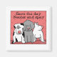 Este design de ímã divertido apresenta três cachorros de desenho animado em um fundo cor-de-rosa com minúsculos sotaques florais em segundo plano. Leituras de texto, Salve o dia, Neuter e Pagar. Para amantes de cães! Excelente de presente para seu amante favorito também! Design com copyright original por S. Fernleaf Designs para Blessingartanimais.