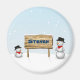 Ilustração winterly com dois bonitos bonitos homens de neve segurando um cartaz de madeira em um ambiente de neve. Personalize este produto com o seu próprio nome.