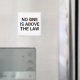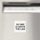 Um dos pilares fundamentais da democracia é que a lei se aplica igualmente a todos. Este design "Ninguém está acima da lei" em texto negro com um pequeno contorno laranja da dentro de Trump o texto pretende dar um grito a esse princípio, e foi inspirado principalmente pelo comportamento de Trump como se ele acreditasse estar acima da lei. O texto e sua cor podem ser personalizados, assim como o contorno da cabeça de Trump com sua própria escolha de imagem, ou nenhuma imagem.