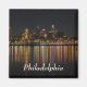 Esta é a lindíssima linha do horizonte da cidade de Filadélfia, tirada à noite do outro lado do rio Delaware, na margem de Camden. A arquitetura dos arranha-céus e edifícios de Filadélfia estão expostos nesta foto. Center City, a área centro de Filadélfia, é o foco desta fotografia. As luzes da cidade lançam reflexões coloridas sobre a água.