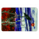 Num céu noturno com algumas nuvens está uma lua de cheio que é vermelha e ascensão sobre um conjunto de montanhas e colinas. Um corvo é empoleirado em um galho de uma árvore-passarinho-morto olhando para a floresta de árvores de folhas vermelhas. Trabalho de arte Copyright ©2018 Kimberly J Tilley.