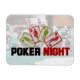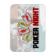 Um ímã flexível com tipografia noturna de pôquer. Fundo é uma imagem fraca com chips de pôquer e cartas de jogar em uma mesa de jogos verde. Camadas sobre o topo é um conjunto de 4 cartas com silhuetas de meninos e meninas com o texto: Noite de Poker. Escrito em letras grandes.
