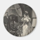 Ilustração antiga em preto e branco de casamento vitoriano com uma sessão de fotografia de retrato de noiva. A noiva está em seu vestido de casamento clássico com buquê prestes a fazer retratos de casamento com seu fotógrafo.