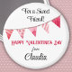 Ídeal ímã redondo de Dia de os namorados para amigos (ou mudar destinatário — professor, chefe, colega de trabalho), decorado com uma faixa festiva de bandeira e texto de roteiro sobre fundo branco. Altere ou remova facilmente o texto usando o Modelo fornecido. Disponível em 3 tamanhos redondos; forma quadrada de 1,25", 2,25" (mostrada) e 2". Impresso em papel de reciclado a 100%. Coberto com risca e mylar resistente a UV. Consulte "Sobre este produto" ao lado para obter mais informações.