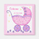 Excelente magneta para dar as boas-vindas à nova bebê para uma nova mãe ou para dar à família e amigos para comemorar o nascimento do bebê! Personalizar para personalizar com o nome e data de nascimento do bebê. Este ímã de tendências tem uma carruagem cor-de-rosa para bebês, com fundo branco, num ímã cor-de-rosa. Estrelas estão acima do entulho e flores roxas lavandas estão abaixo dele. O rolo rosa é acentuado com cores roxas lavandas. Este ímã também coordena com outros produtos para bebês nesta loja para um presente de bebê excelente. O buggy é uma arte original na moda, fofa e chorosa da Phyllis Dobbs. Totalmente personalizável.