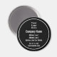 No topo, há uma imagem de exibição que pode ser substituída pelo logotipo de sua empresa. Sob o logotipo, há seis linhas de texto de exibição branca que podem ser editadas para criar uma mensagem personalizada. (Apresentado: Nome Da Empresa, Linhas De Endereço, Número De Telefone, Sítio Web). O ímã é preto. O ímã tem uma borda branca.