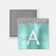 Folha de folha de prata e de folha de alumínio azul esfarelo metálico brilhante esmagado Nome do monograma de metal e ímã inicial. Isto faz o doce e perfeito aniversário de 16 anos, casamento, chá de panela, aniversário, chá de fraldas ou festa de solteira presente para alguém que ama luxo de luxo e estilos quíticos.