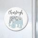 O design do produto apresenta um perfil azul silenciado de um elefante decorado com padrão paisley.