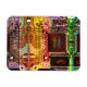 Criação de estilo robótico brilhante geek com conselho de circuito impresso verde, roxo, rosa, azul e amarelo. Design de arco-íris geométrico e de tendências. Nome e texto para personalizar em um processador.