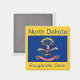 Uma imagem autêntica de qualidade superior da bandeira do Dacota do Norte, definida entre o nome do Estado e o apelido sobre um fundo de cor de bandeira.