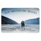 Um rústico salve o ímã de fotos para o casal ao ar livre e aventureiro, projetado para acomodar sua foto favorita de noivado de sangramento horizontal ou orientada a paisagem. "Nossa Aventura Começa" aparece como uma sobreposição de texto arquivada no topo, com seus nomes, data de casamento e local do casamento na parte inferior.