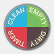 Organize a máquina de lavar loiça do seu escritório ou a máquina de lavar loiça da cozinha com este ímã de máquina de lavar loiça colorido ou vazio. Crie um sistema em que todos saibam o status dos pratos na máquina de lavar louça. Limpo, vazio, sujo ou temporizador. O plano de fundo da borda da cinza pode ser alterado para a cor de sua escolha. Boa lavagem!