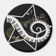 Design musical incomum com chaves de piano girando com notas musicais de ouro fluindo do centro das teclas de uma estrela negra. Este design poderia fazer o presente perfeito para o amante do piano e está disponível em uma coleção de presentes e produtos de papel. sgb01