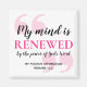 Trata-se de um ímã cristão de afirmação positiva, em que utilizei uma citação Bíblia popular para fazer uma declaração positiva. O texto diz: "A MINHA MENTE É RENOVADA PELO PODER DA PALAVRA DE DEUS", que se baseia nos romanos 12:2. O design mostra uma escrita preta e uma tipografia cor-de-rosa-negrito com marcas de fala cor-de-rosa-claro contra um fundo branco. Na parte inferior, o texto diz MEU AFIRMAÇÃO POSITIVA e ROMANS 12:2, que é PERSONALIZÁVEL, para que você possa criar seu próprio texto ou adicionar seu nome. Essa seria uma maneira excelente de se lembrar de declarar afirmações positivas ao longo do dia, por exemplo, cada vez que você passa pela geladeira. Um presente ideal para aniversários, guardanapos no Natal, favorecer presentes na igreja, ou encorajar alguém a dominar uma vida de pensamento negativa ao declarar a Palavra de Deus.