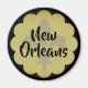 Em preto e ouro com pulgas mudas, este imã é perfeito para visitantes da Louisiana.