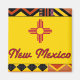 Imagem de excelente apresentando o padrão nativo americano em segundo plano com o texto Novo México e ou Papais noeis Fe. Incluído o selo do Estado do Novo México.