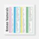 Um ímã que tem os algarismos romanos para 1 a 100. É muito útil quando se está a tentar perceber o que significam os números romanos sobre uma coisa. Também é útil como ajuda ao ensino de excelentes para crianças e adultos. Tem as palavras "Numerais Romanos" ao longo do lado esquerdo, depois à direita tem os números regulares nas faixas de cor e à direita de cada faixa de cor é o numeral romano para esse número.