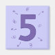 A pintura do número cinco na lavanda, esboçada em roxo, com cinco fitas, e cinco faíscas estelares, ao seu redor, é impressa em ímãs personalizados. A cor de fundo pode ser personalizada.
