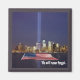 Este gráfico mostra o horizonte de Manhattan em Nova Iorque. A imagem foi tirada à noite e o brilho azul do memorial do World Trade Center está iluminando o céu e refletindo na água abaixo. Na superfície da água, uma bandeira americana foi sobreposta com as palavras "nunca esqueceremos" escritas em branco por baixo.