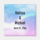 Um imã de casamento com uma imagem de fundo suave e adorável. Azul pastel e nuvens cor-de-rosa com um arco-íris mágico.