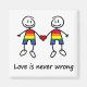O amor nunca é camisetas e presentes errados - orgulho gay design com duas pessoas em cores arco-íris segurando um coração vermelho.