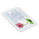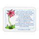 Este Magnet apresenta os versos bíblias de 1 Corinthians 13:4-7a dizendo: "O amor é paciente, o amor é gentil, não inveja, não se vangloria, não se orgulha, não é rude, não se busca por si mesmo, não é facilmente irritado, não mantém registro de erros. O amor não se encanta na mau, mas se regozija com a verdade. Ela sempre protege, sempre confia, sempre espera, sempre persevera. O amor nunca falha." O pano de fundo é uma flor cor-de-rosa personalizada com uma borda azul.