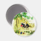Ilustração encantadora em aquarela de Fritz Baumgarten do livro "Die Vogelhochzeit", traduzido como "O Casamento dos Pássaros". Publicado em 1900, a história é baseada em uma famosa canção alemã escrita no século XVIII sobre um melro e um tordo que se casam e têm seu casamento na floresta verde.
