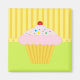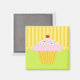 O imã do cupcake mostra um cupcake com aspecto delicioso e um verde limão de fundo agradável com elementos amarelos.