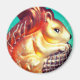 Um esquilo dourado e âmbar a prender-se à pinecona. Design de safra para o outono ou o inverno.