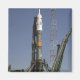O foguete Soyuz é erguido na plataforma de lançamento do Cosmodrome Baikonur, no Cazaquistão, em destaque com Baikonur.