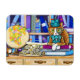 "O Guardião do Livro" retrata um gato-palheiro de tigre-de-vidro como guardião dos livros num cenário antigo do mundo. Tintas e lápis coloridos. (c)2014 Andie.