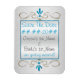 O ímã de geladeira "Salvar a Data" com campos de texto personalizados turquesa para você personalizar, colocado contra um design original de Leslie Sigal Javorek, com 2 mini estrelas de David entre florescimento de ouro e turquesa em um fundo de prata (não metálico). Fino e flexível, esses ímãs se ajustado facilmente em um envelope com seus convites ou por si mesmos.