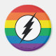 Pride DC | O logotipo icônico do Flash com camadas de cores arco-íris dentro.