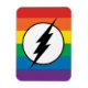Pride DC | O logotipo icônico do Flash com camadas de cores arco-íris dentro.